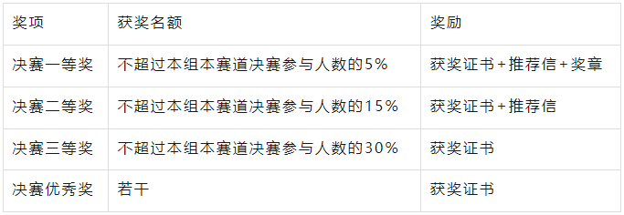 2. 全国决赛奖项(每个组别、类别、赛道分别评奖)