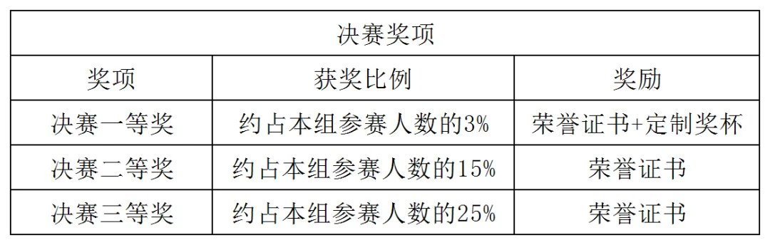 2.决赛一等奖额外颁发竞赛荣誉奖杯。