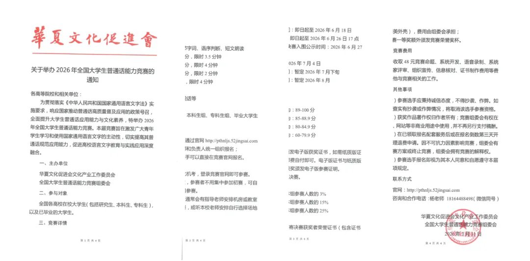 竞赛名称:2026年全国大学生普通话能力竞赛