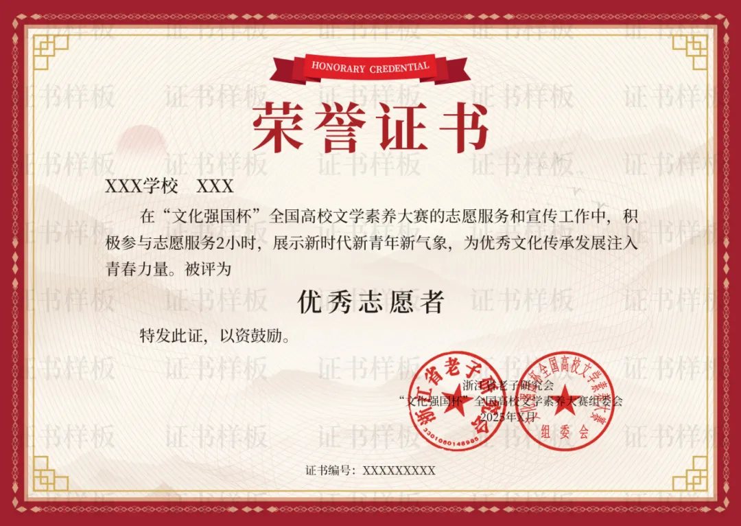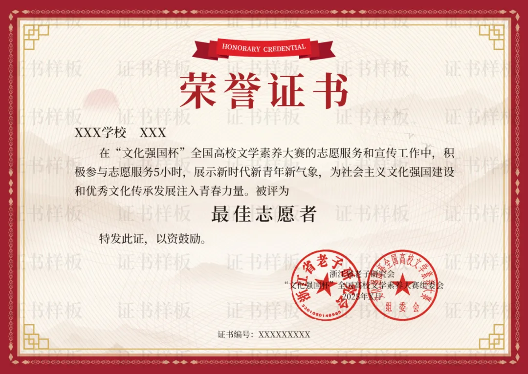 为全面贯彻党的二十大和二十届二中、三中全会精神,深入贯彻习近平文化思想,助力进一步推动中国特色社会主义文化繁荣兴盛、建设社会主义文化强国,引领高等院校学生主动担负起新时代的文化使命,推动老子相关学术交流,浙江省老子研究会现决定继续面向全国高等院校学生开展“文化强国杯”全国高校文学素养大赛。现将大赛相关事宜通知如下,细则详见附件。