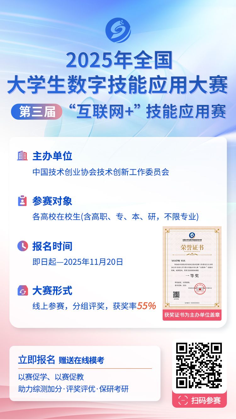 【“互联网+”报名通知】2025年全国大学生数字技能应用大赛第三届“互联网+”技能应用赛