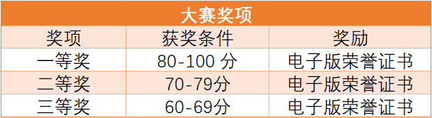 比赛设“优秀指导教师奖”。组织报名且成功完成比赛的学生人数达到50人及以上的教师,将被授予“优秀指导教师”,颁发纸质版证书。