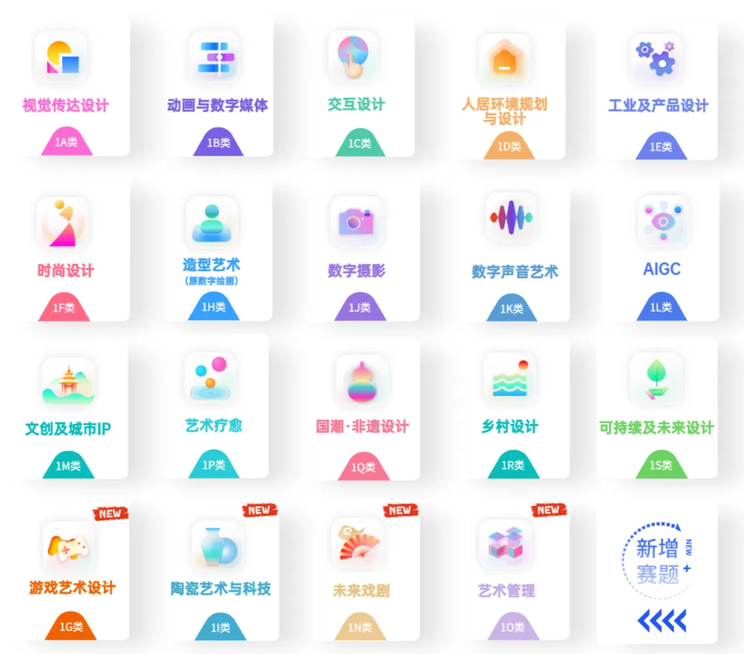 本次发布的非命题内容,延续大赛一贯理念,鼓励学生围绕现实与未来议题,展开多元、跨界、融合的艺术设计创作。本届非命题赛道新增四个类别,包括游戏艺术设计、陶瓷艺术与科技、未来戏剧、艺术管理,进一步拓展了竞赛的涵盖领域与创新维度。非命题类别包括: