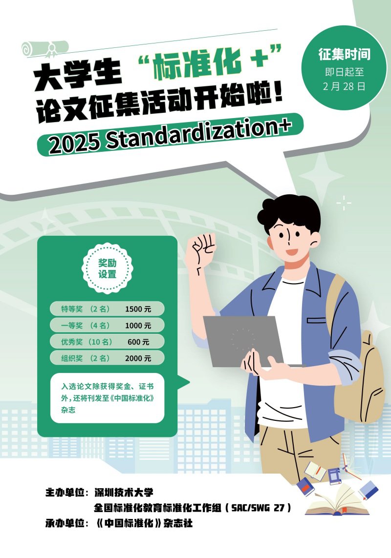 以《国家标准化发展纲要》《标准化人才培养专项行动计划(2023—2025年)》为指引,围绕提升全国各高校师生对于标准化的认识与重视,激发师生对于“标准化+”的学习与思考热情,特开展2025年大学生“标准化+”论文征集活动。