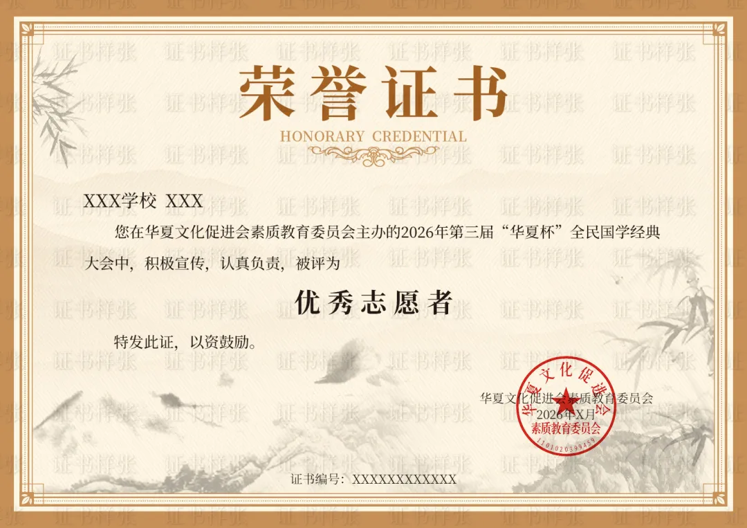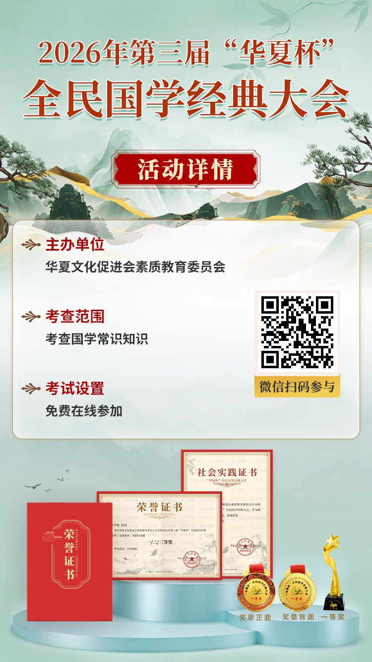 2026年第三届“华夏杯”全民国学经典大会,免费答题领证书