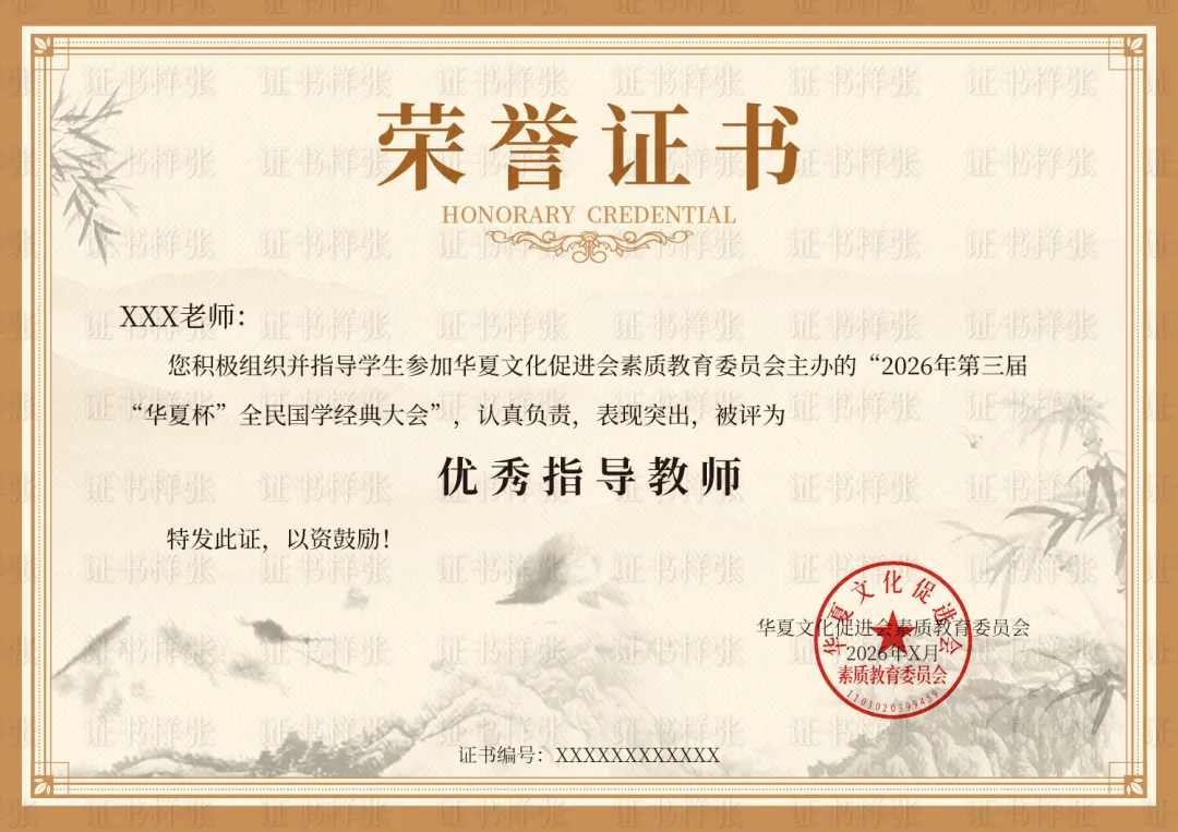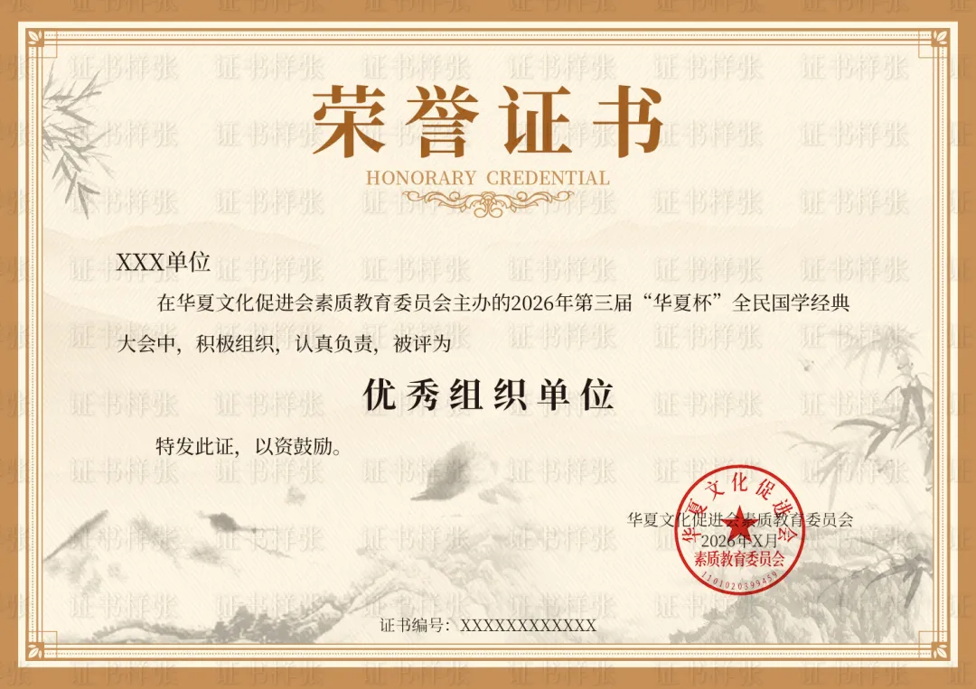 为进一步推进学习贯彻习近平新时代中国特色社会主义思想主题教育走深走实,继续推动文化繁荣,建设中华民族现代文明,增强广大青年对中华文化的认同感和自信心,推动中华优秀文化创造性转化、创新性发展,培养广大青年的道德修养和人文素养。华夏文化促进会素质教育委员会特继续主办2026年第三届“华夏杯”全民国学经典大会活动。