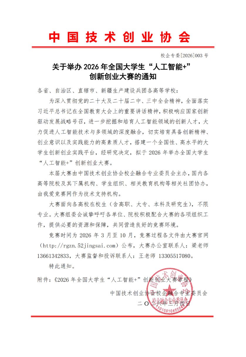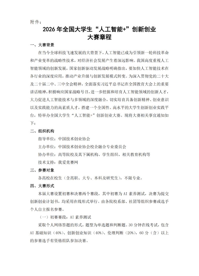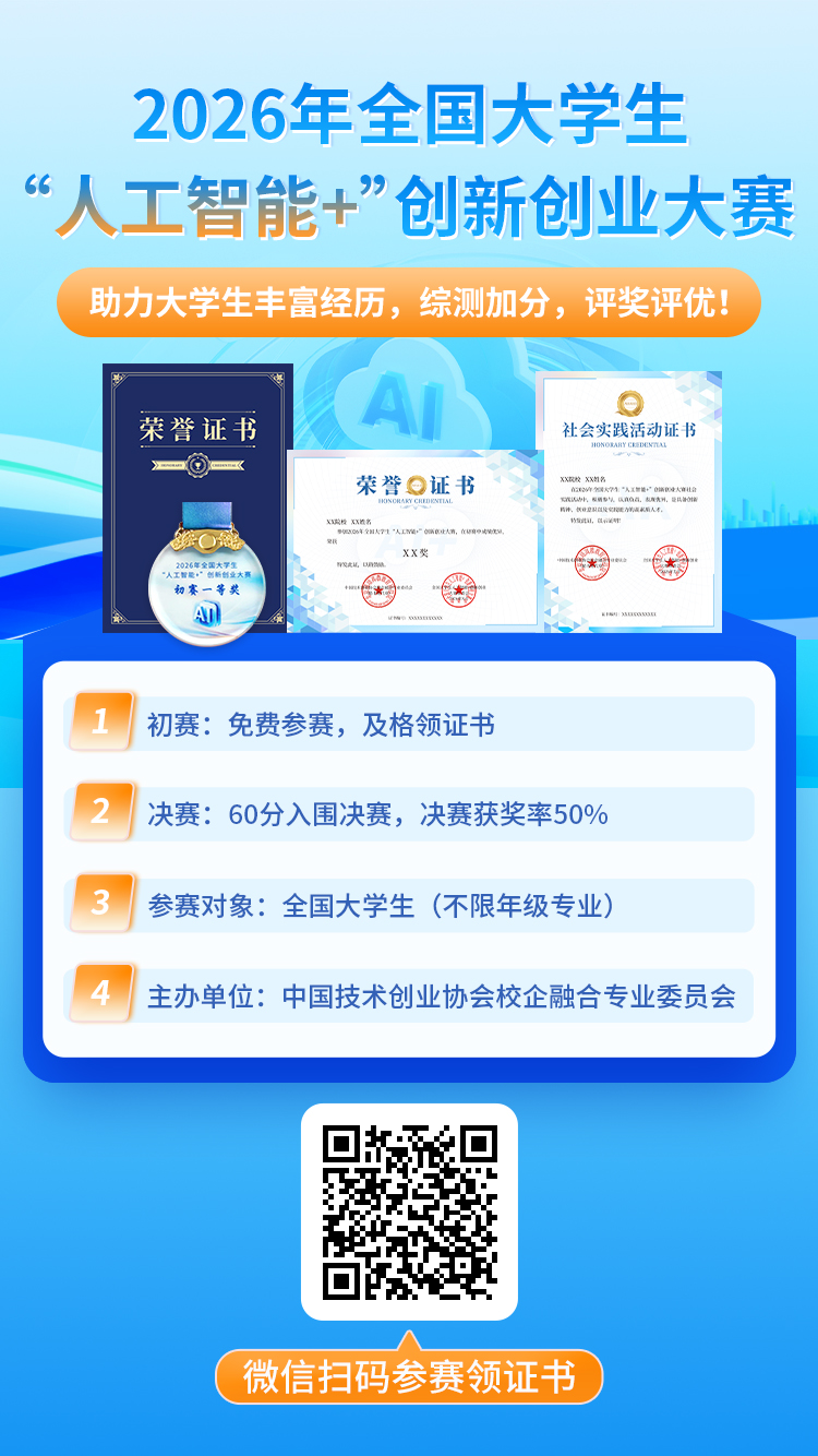 大赛名称:2026年全国大学生“人工智能+”创新创业大赛开始报名,初赛免费答题,决赛可组队!
