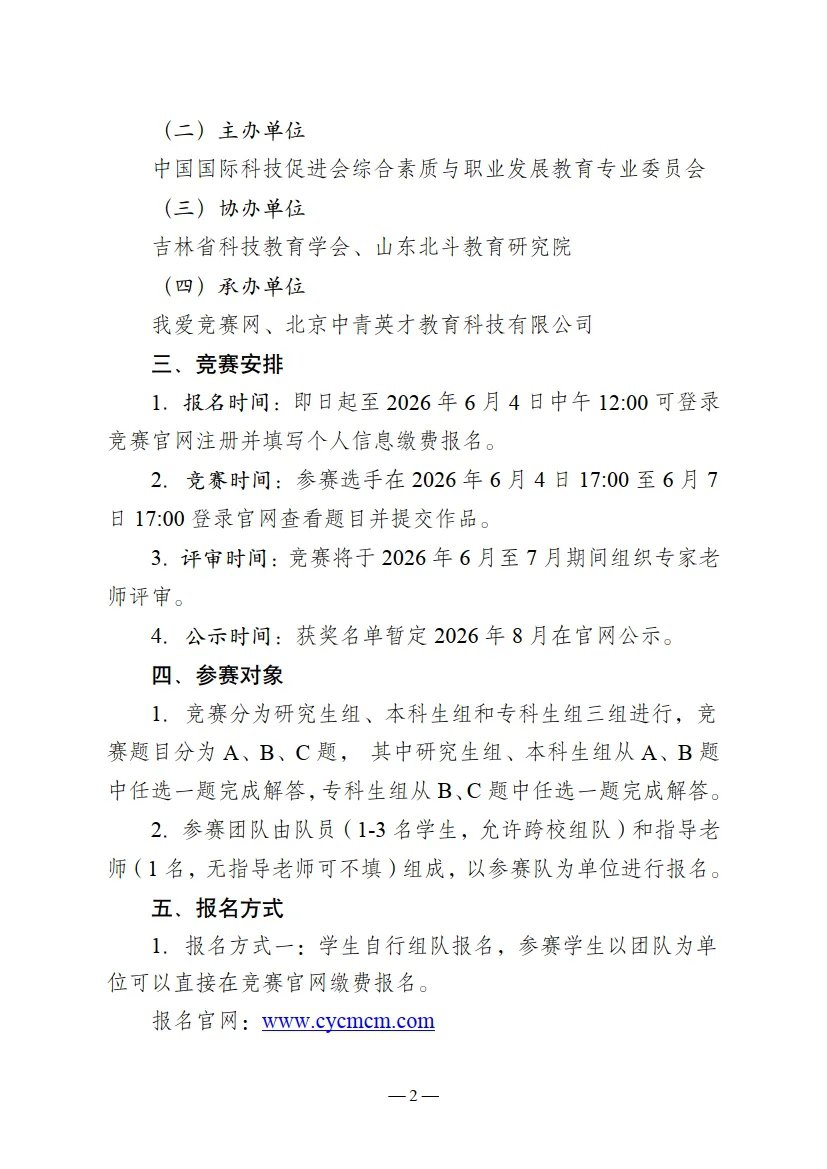 2.竞赛时间:参赛选手在2026年6月4日17:00至6月7日17:00登录官网查看题目并提交作品。