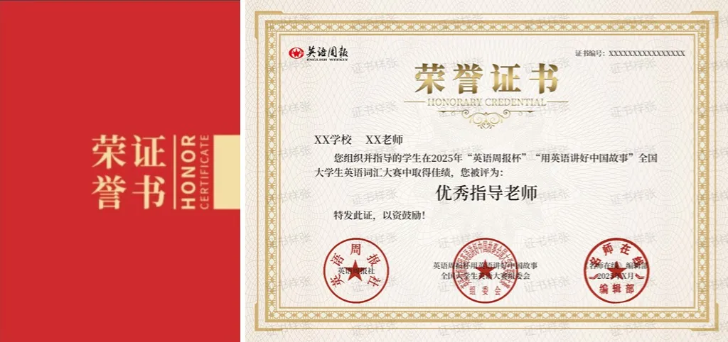 1.若获奖者报名时有填写指导老师,老师可获得一份师生同奖纸质版证书(指导老师非必填,一名老师可指导多名学生,一名学生只能填写一名指导老师)