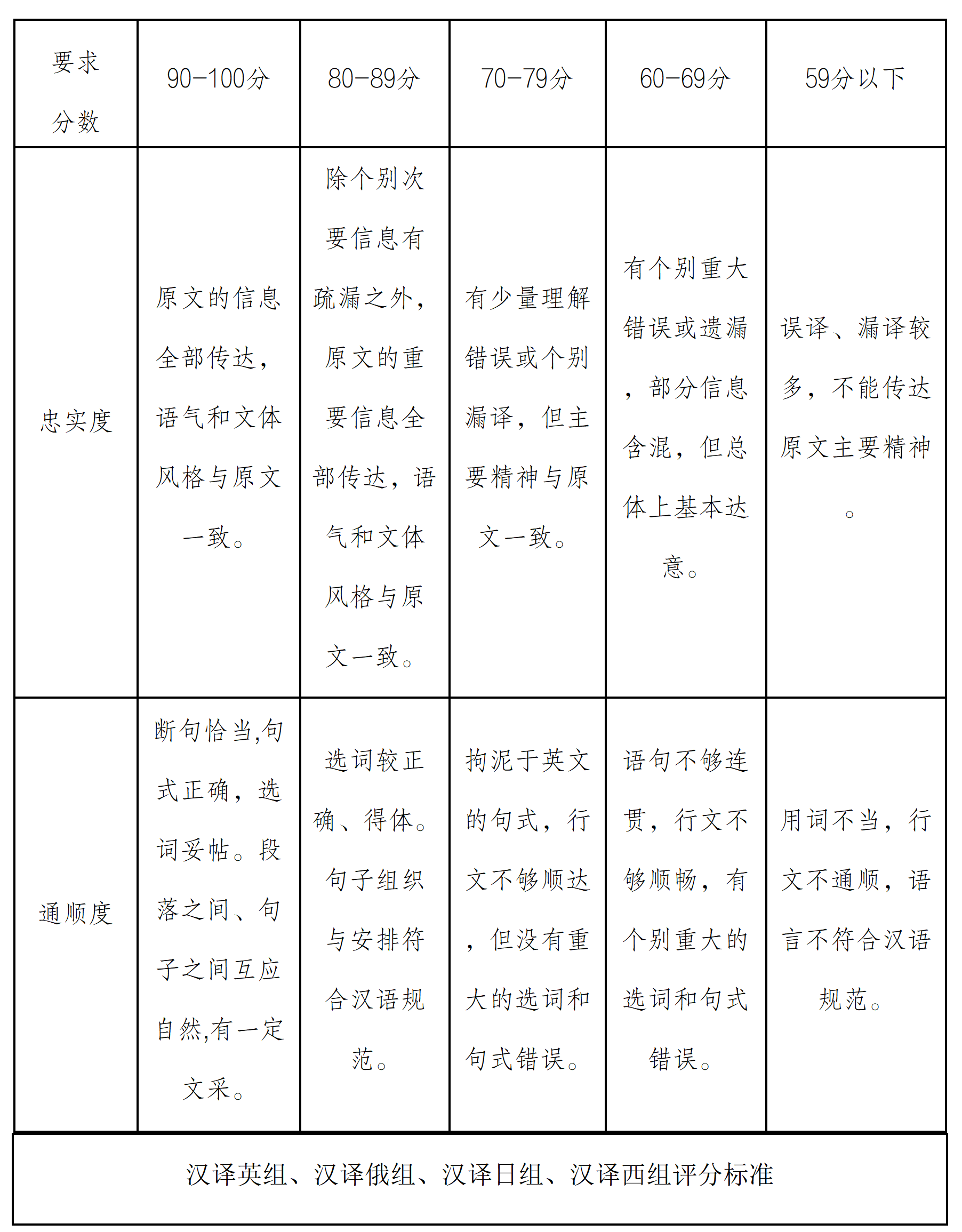 英译汉组、汉译英组、汉译俄组、汉译日组、汉译西组。