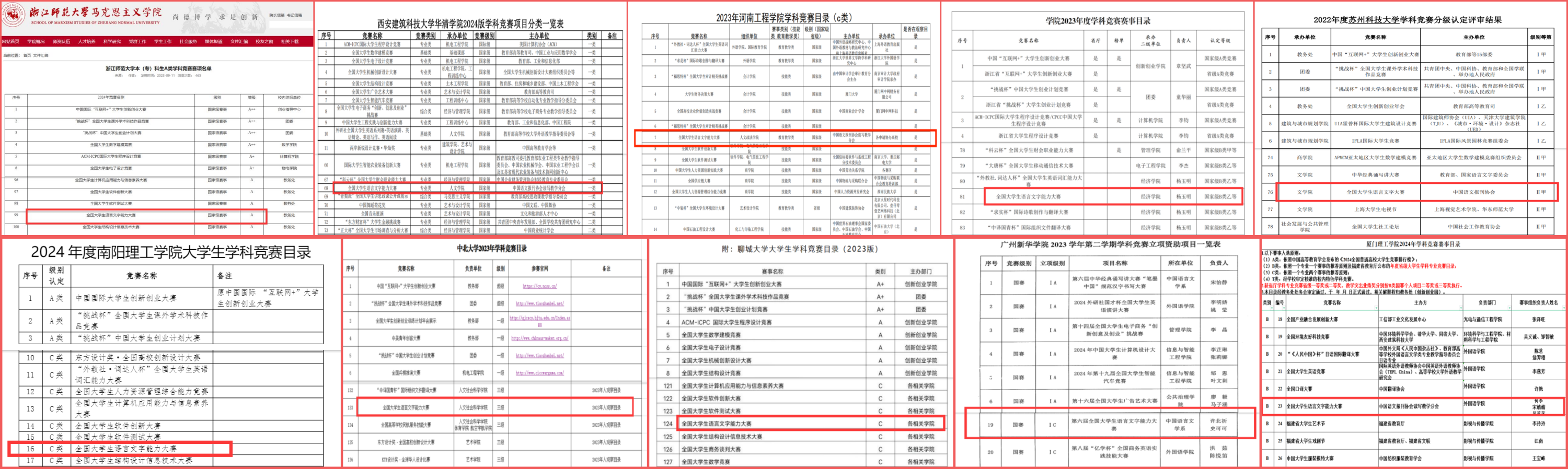 部分院校竞赛立项名单截图