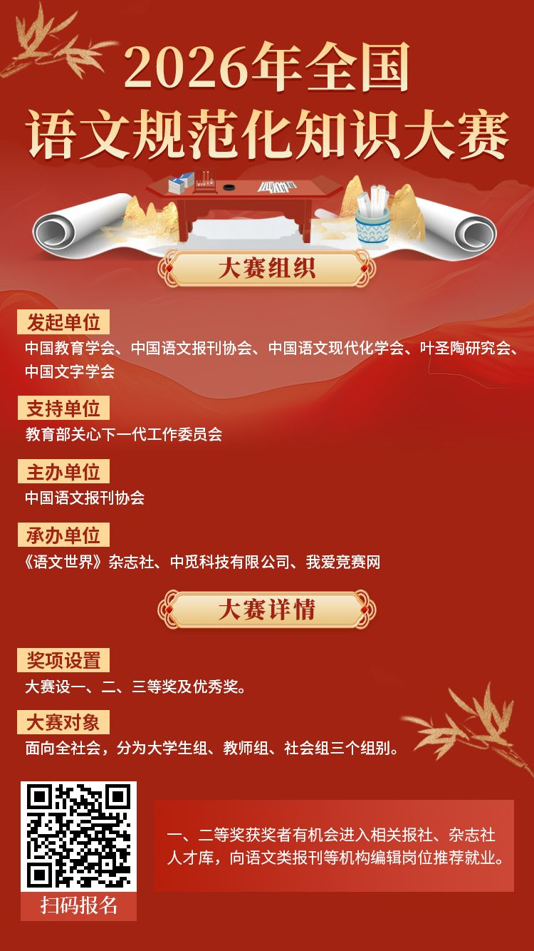 (一)参赛者可登录大赛官网自愿报名参赛、领取线上参赛学习资料备赛等,也可自愿订购纸质版《语文世界》杂志“全国语文规范化学习活动专刊”学习。