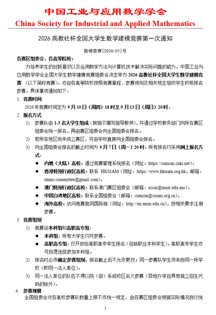 竞赛名称:2026年高教社杯全国大学生数学建模竞赛